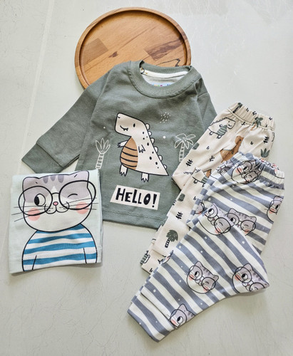 ست بچگانه اسپرت برند لیموتن طرح گربه و داینو